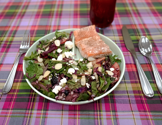 INGREDIENTS: 10 ounces cooked salmon, flaked and divided in half 1/2 cup plain non-fat Greek yogurt, divided in half 1 tablespoon light mayonnaise 2 teaspoons