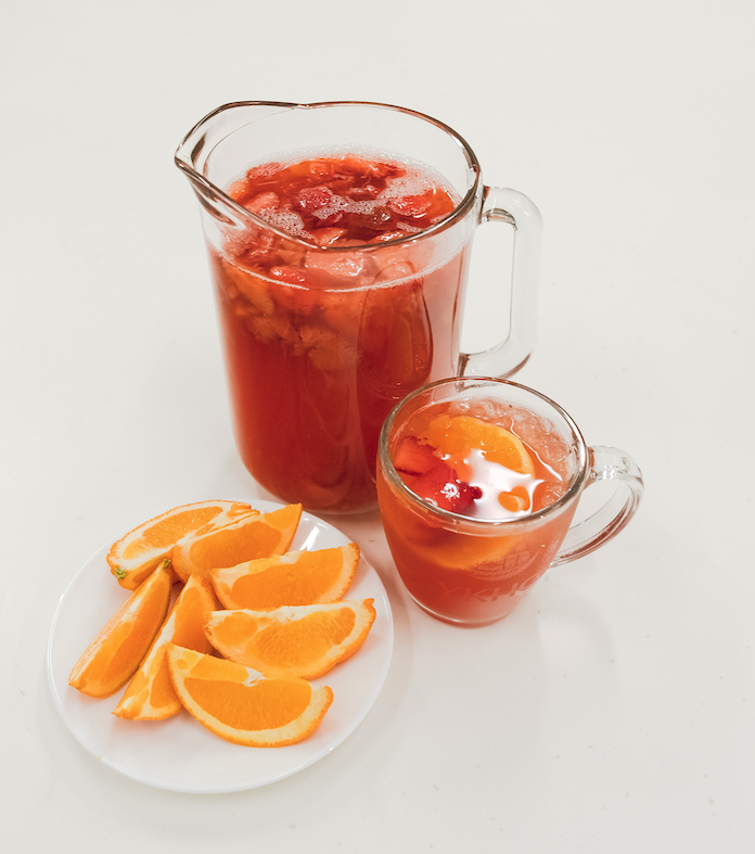 INGREDIENTS: 8 cups rhubarb, cut into 1 inch pieces 8 cups water 1 orange, peeled and sliced in rings 1-2 pints of berries, mashed PREPARATION: