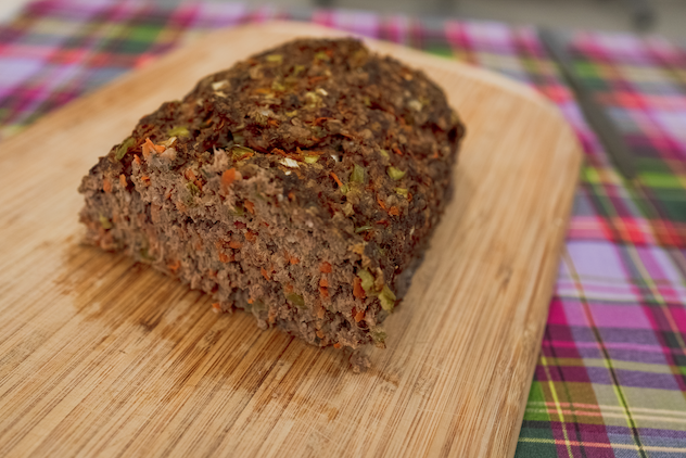 INGREDIENTS: 2 pounds ground game meat 1 cup oatmeal 2 large eggs, beaten 1 cup shredded carrot 1/2 cup onion, diced 1 bell pepper, diced