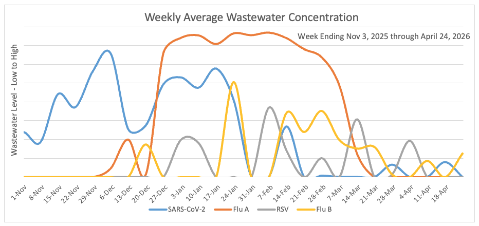 Wastewater testing does not tell us who is sick with the virus, but it does help us recognize when a virus enters the community and whether infections are going up or down.